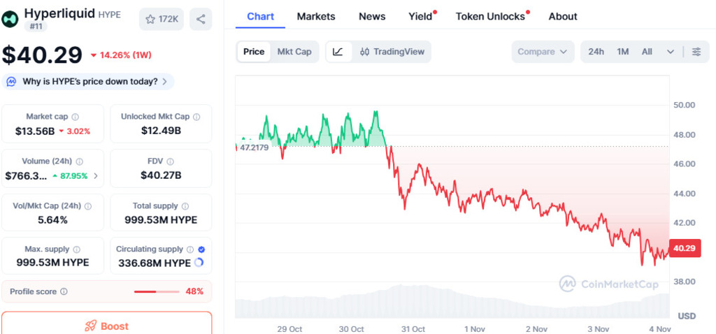 The HYPE price maintains the $40 support despite recent market downturns. Bears pushed the HYPE crypto to an attractive buy zone following a 14% dip on its weekly chart. But with a rebound on the cards, investors are unfazed.