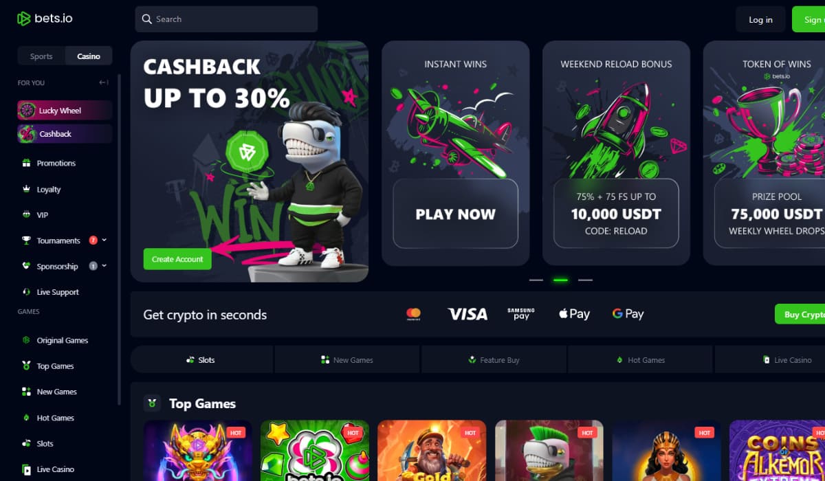 5. Bets.io: Top Online Crypto Casino With Huge Game Library And Cashback Offers