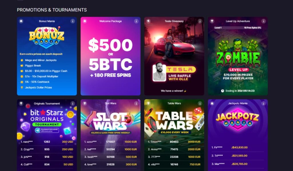 - BitStarz Originals Tournament: €$5,000 Cash Weekly
