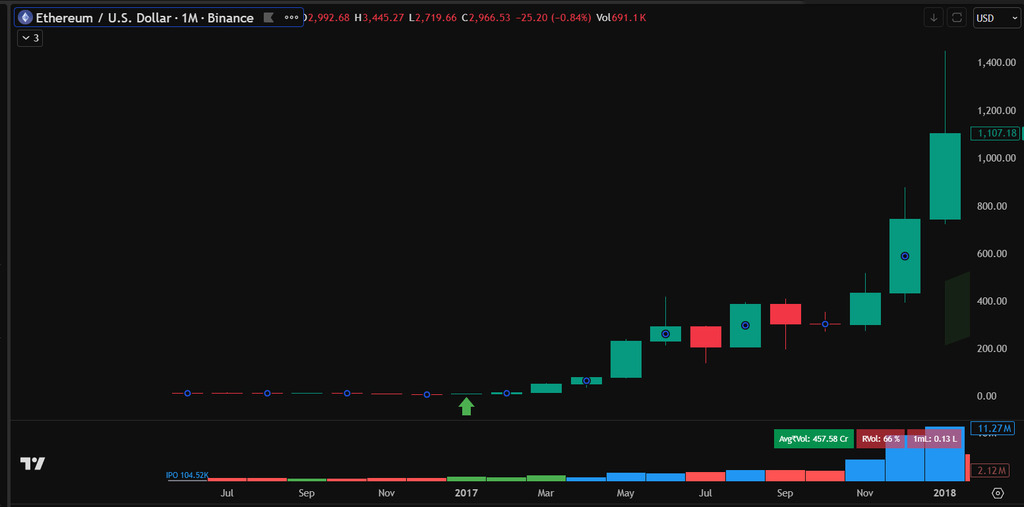 Ethereum launched in 2015, but its most significant growth phase emerged when it became the foundation for decentralized applications and token launches. Between 2017 and 2018, ETH experienced substantial expansion driven by increased network usage, developer adoption, and real-world applications rather than speculation alone.