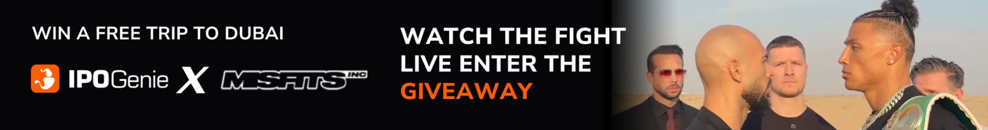 IPO Genie is giving five fans the chance to skip every cost and experience Misfits Boxing like royalty. If you want the loudest, closest, most unforgettable version of this fight, enter the IPO Genie giveaway before it closes. Someone is going to Dubai. Make sure you give yourself a chance.