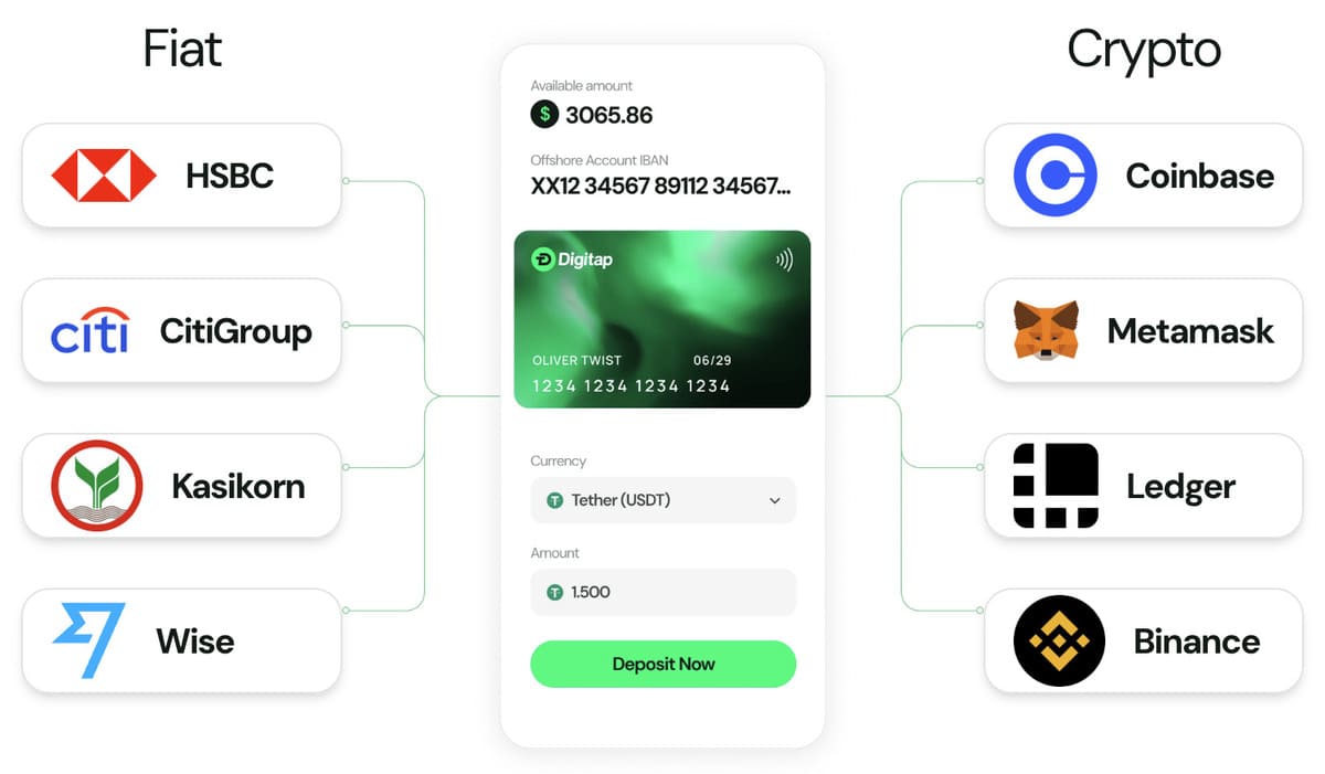 Built as the world’s first omni-bank, Digitap combines crypto and fiat into a single app. Users can now access wallets, banks, and exchanges on one single app. They can even deposit, withdraw, swap, and spend in both fiat and crypto from the same app.