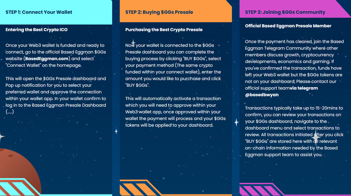 Joining the Based Eggman presale is simple: connect your Coinbase Wallet or any Base-compatible wallet, fund it with ETH or Base coins, and participate directly via the project’s official site. Early buyers benefit from exclusive bonuses and the chance to become foundational members of the next top Base memecoin. As the Base DEX and onchain trading landscape heats up, getting in early on Based Eggman could be the move that defines your crypto profits for 2025.