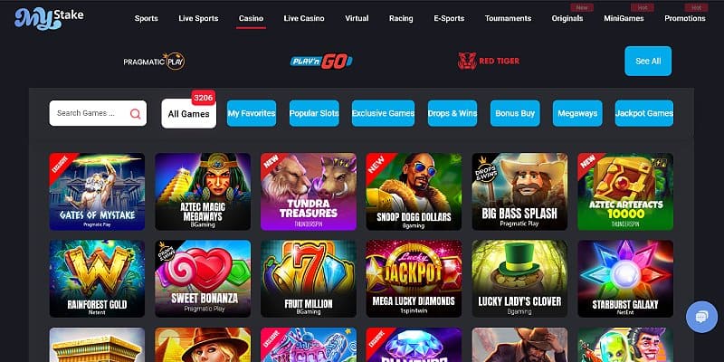 - MyStake: Crypto players get 10% cashback on MyStake, and the emphasis on secure crypto gambling is more than obvious, with ten different payment methods available. MyStake has a big game library too, with over 3,500 games in total and a heavy focus on popular Bitcoin slots.