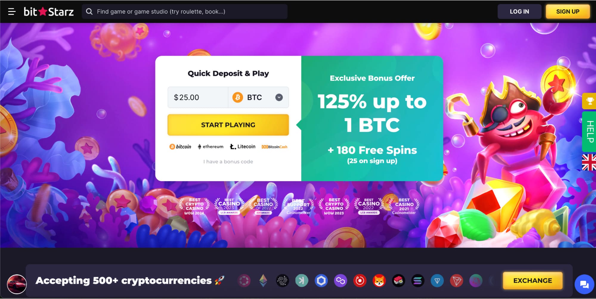 BitStarz is unique in that it supports over 500 cryptocurrencies for both deposits and withdrawals. The crypto casino offers an extensive library of slots, table games, and live dealer games, all optimized for quick and frictionless gameplay.Ā