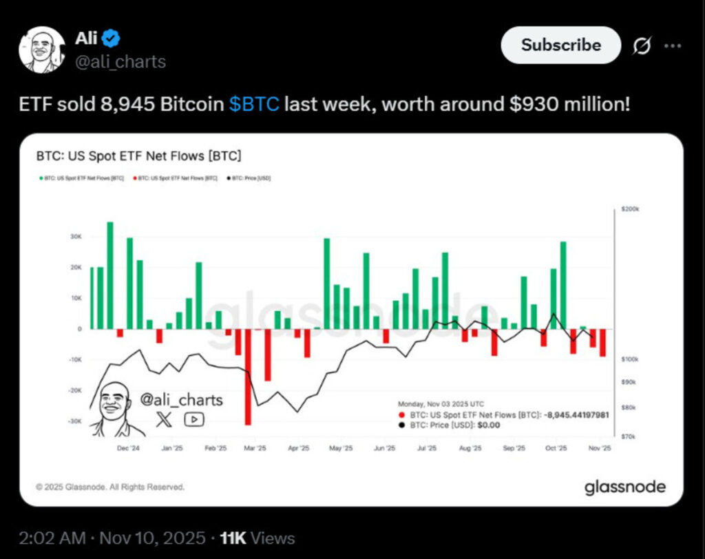 And now, many think that BTC is back and that its price wonāt fall again, but thatās not true. Namely, even though it recovered, ETFs sold 8,945 BTC last week, worth around $930 million. Also, BTCās price still might fall, as it still hasnāt regained its STH realized price at $111,937.Ā