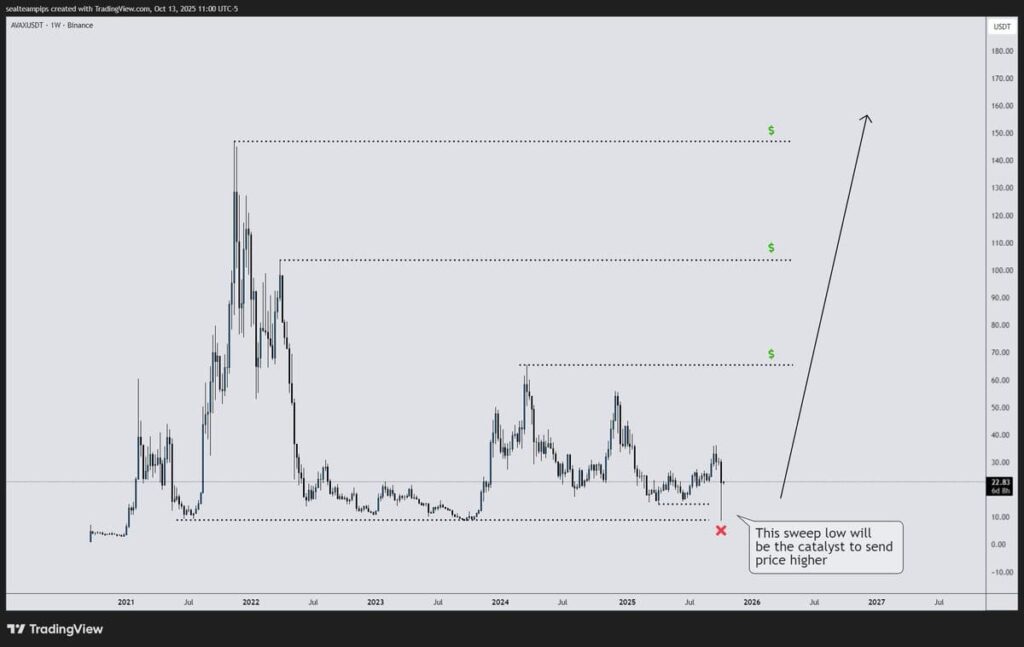 AVAX price has rebounded by 160% from its recent low, trading near $22.70. Analysts point to expanding stablecoin supply and NFT volumes on Avalanche as indicators of renewed demand. A crypto analyst on X has set the sight on AVAX price rallying to hit $47 or even $65 should the momentum continue. With institutional participation increasing, traders are labeling AVAX among the best crypto to buy for 2025.