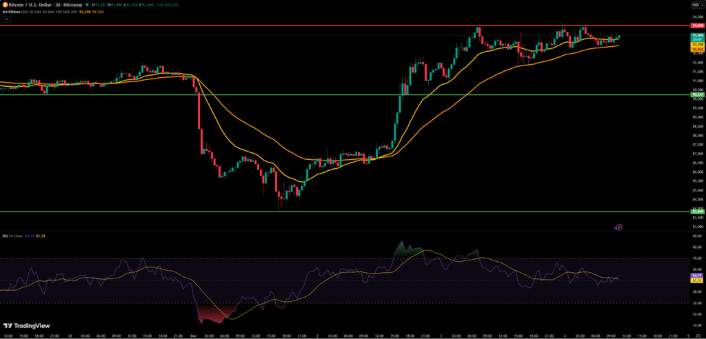 As of December 4, 2025, Bitcoin was bouncing off $92,000 as a support level. After falling below $85,000 on the first day of the month, Bitcoin’s price regained some buying pressure. This resulted in a breakout above $90,000.
