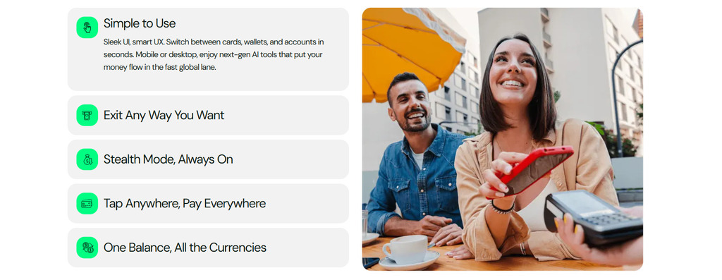 Digitap merges traditional banking with blockchain to create a unified platform for holding, swapping, and spending fiat and crypto across global rails. Users can easily access multi-currency accounts via Digitap’s live iOS and Android app. Moreover, this platform enables instant conversions and low-cost transfers through AI-optimized routing.