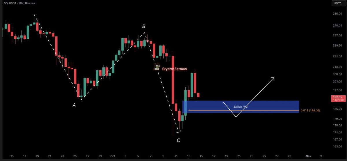 Besides, technical indicators also have a bullish bias. Recently, Solana has regained its Ichimoku Cloud zone and major moving averages on the 4-hour chart, which points to a structural recovery. An A–B–C corrective pattern is completed near $185, which indicates that there is a potential major bottom in place.