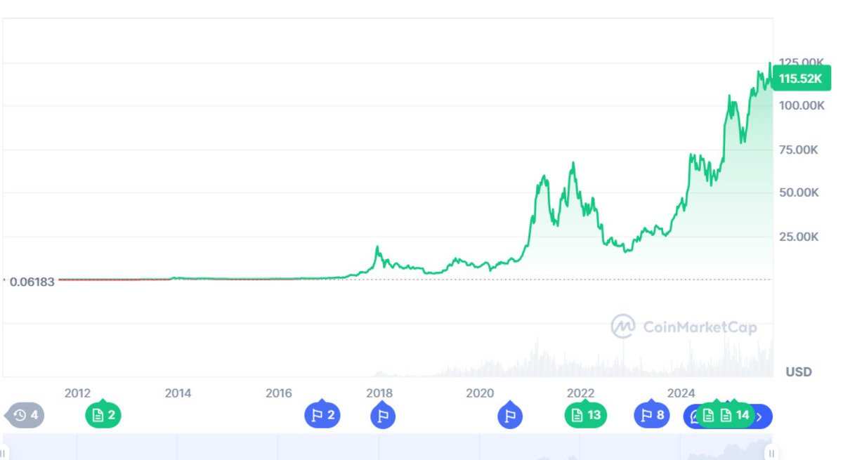 At the moment of writing, Bitcoin’s price stands at $115,524, not moving much after dropping by 8.13% from its all-time high of $126,198. Analysts say that the current sideways movement could mean the market is consolidating, giving traders a chance to prepare for another potential rally. Others view it as a healthy cooldown after months of strong gains.