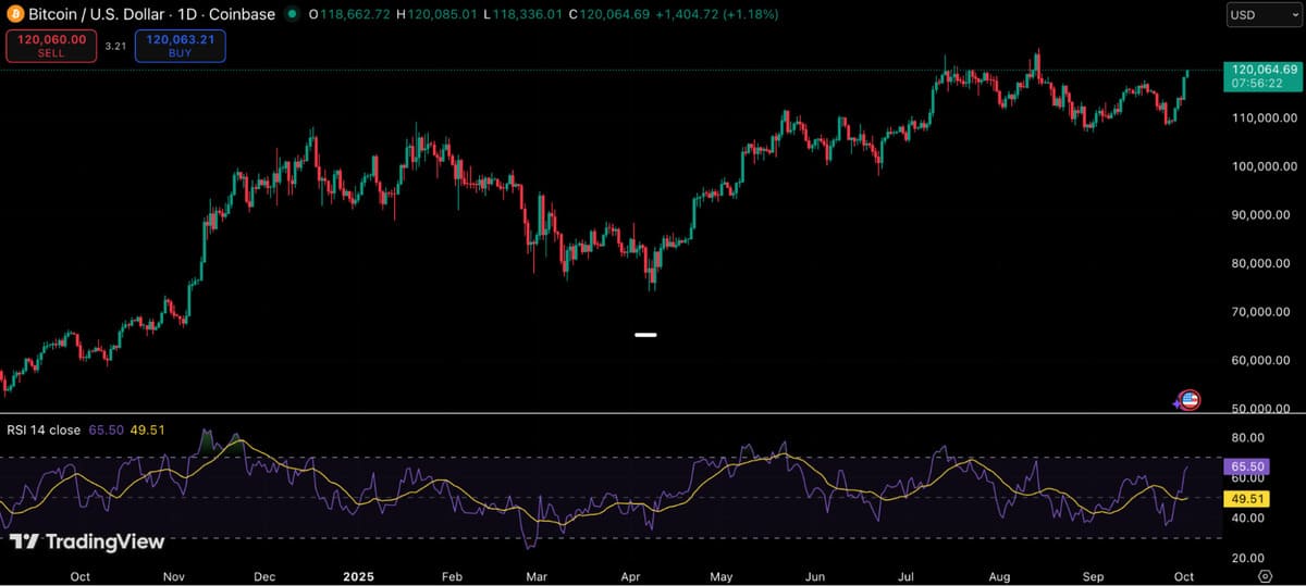 Bitcoin’s powerful surge has carried the crypto market into October with fresh momentum, as the world’s largest digital asset smashed through $120,000 for the first time in weeks. A sudden rebound in ETF inflows and optimism around the U.S. government avoiding a prolonged shutdown helped spark the move, giving traders renewed confidence after September’s turbulence.