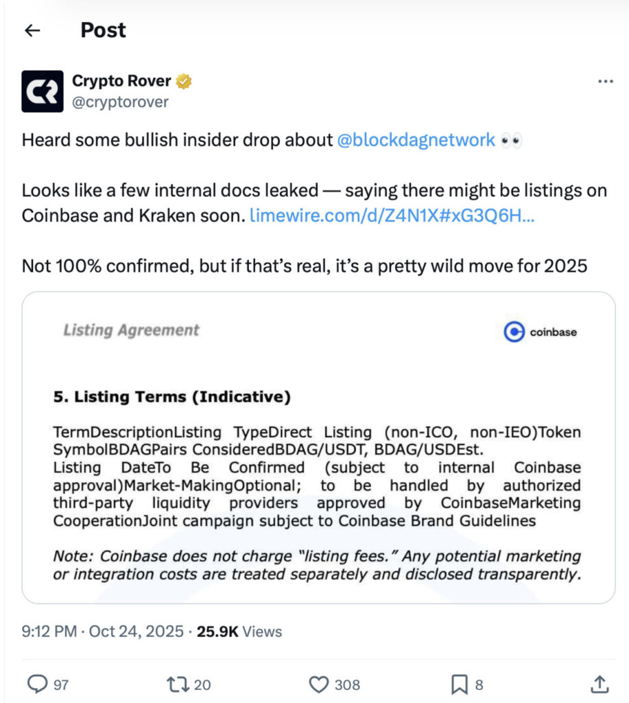 That answer may lie with BlockDAG (BDAG). Crypto Rover’s recent leak of internal documents suggests that Coinbase and Kraken listings may be closer than expected. If Crypto Rover’s leak is real, BDAG isn’t a 10x play, it’s a 1000x monster,” that has already captured the attention with $435M presale. For those tracking top crypto assets, this level of exchange readiness could signal the next major market leader.