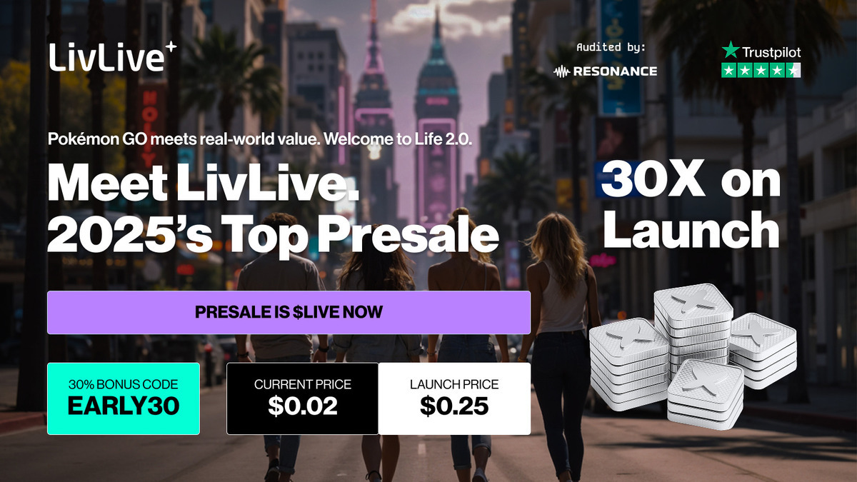 Crypto rewards the bold. Those who waited for “the perfect time” usually find themselves buying tops. LivLive’s message is simple: participate, earn, and grow. Early adopters get access, bonuses, and the future of presence-based earning. Use the EARLY30 bonus code during the LivLive presale, join the ecosystem, and turn your daily life into your next crypto victory.