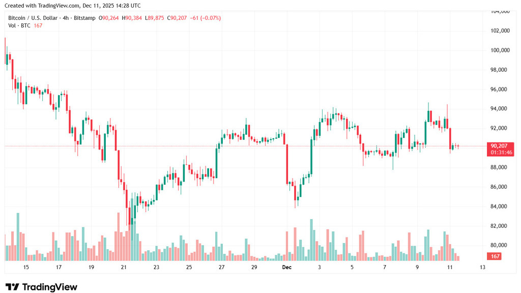 Bitcoin Stays Near $90,000 but Shows Weak Energy