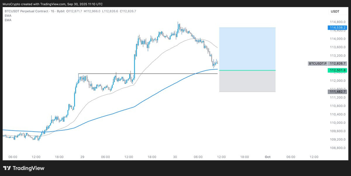 The BTC price is currently trading between $113k and $114k after bulls defended the $109k level. Keith Alan of Material Indicators highlighted that the 21-day, 50-day, and 100-day SMAs have clustered, forming a key resistance area. Traders see $116k as the near-term ceiling, with a push above that range opening a path to $120k and possibly mid-$120k levels.