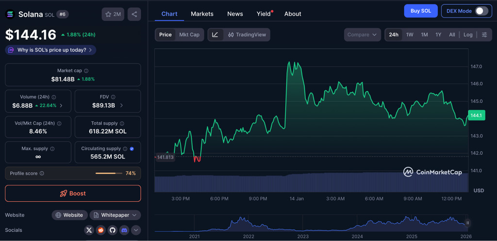 Historically, early-year periods have often coincided with stabilization phases for Solana. Analysts are monitoring resistance near $145, though further movement depends on broader market sentiment and sustained demand.