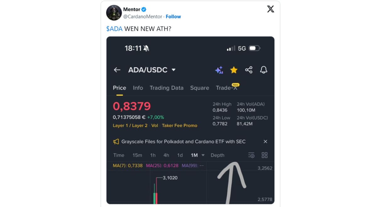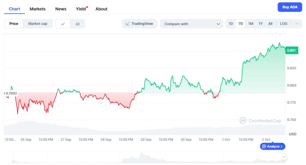 The Cardano price has started an upward trajectory, registering a 3.1% gain on the 7D chart, per CoinMarketCap. This recent move follows a strong breakout from the $0.80 zone, which acted as a major resistance for Cardano during multiple previous sessions.Ā