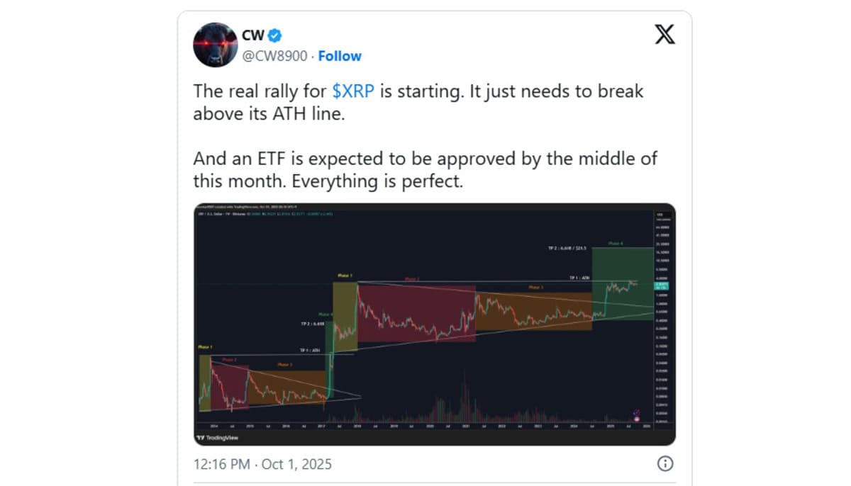 A Degen trader, CryptoLegend, predicts that the value of Ripple could soar to $4.20. However, CW forecasts that the XRP price might surge to $6.50 if a Ripple ETF gets approved this month.Ā