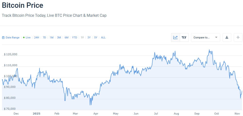 A standard line chart shows Bitcoinās price movement, while users can switch to TradingView for more advanced technical tools.