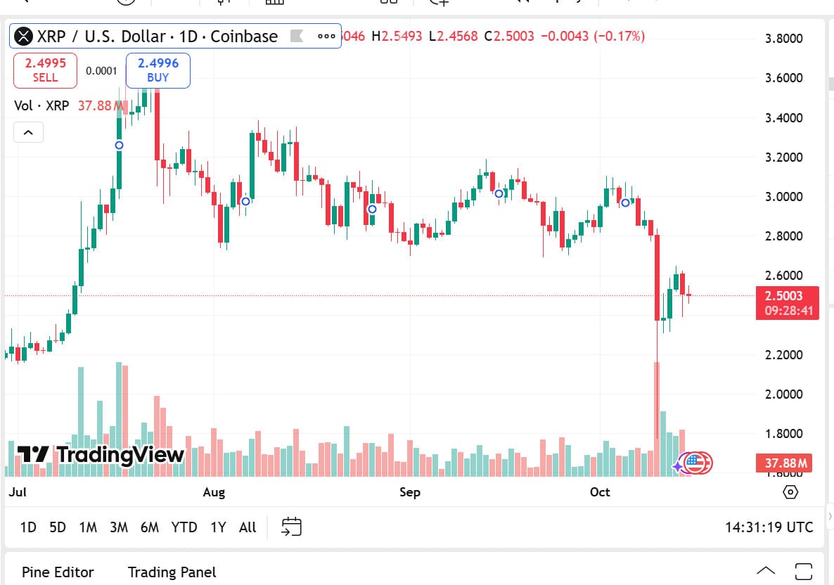 XRP currently trades at $2.49, increasing by 1.64% in the last 24 hours, with a market cap of $148.37 billion and trade volume of $5.82 billion despite a drop of 29.07% on a daily basis. The recent upsurge is a testament to investor confidence in Ripple’s global payment network and renewed interest in decentralized finance use cases tied to the XRP Ledger.