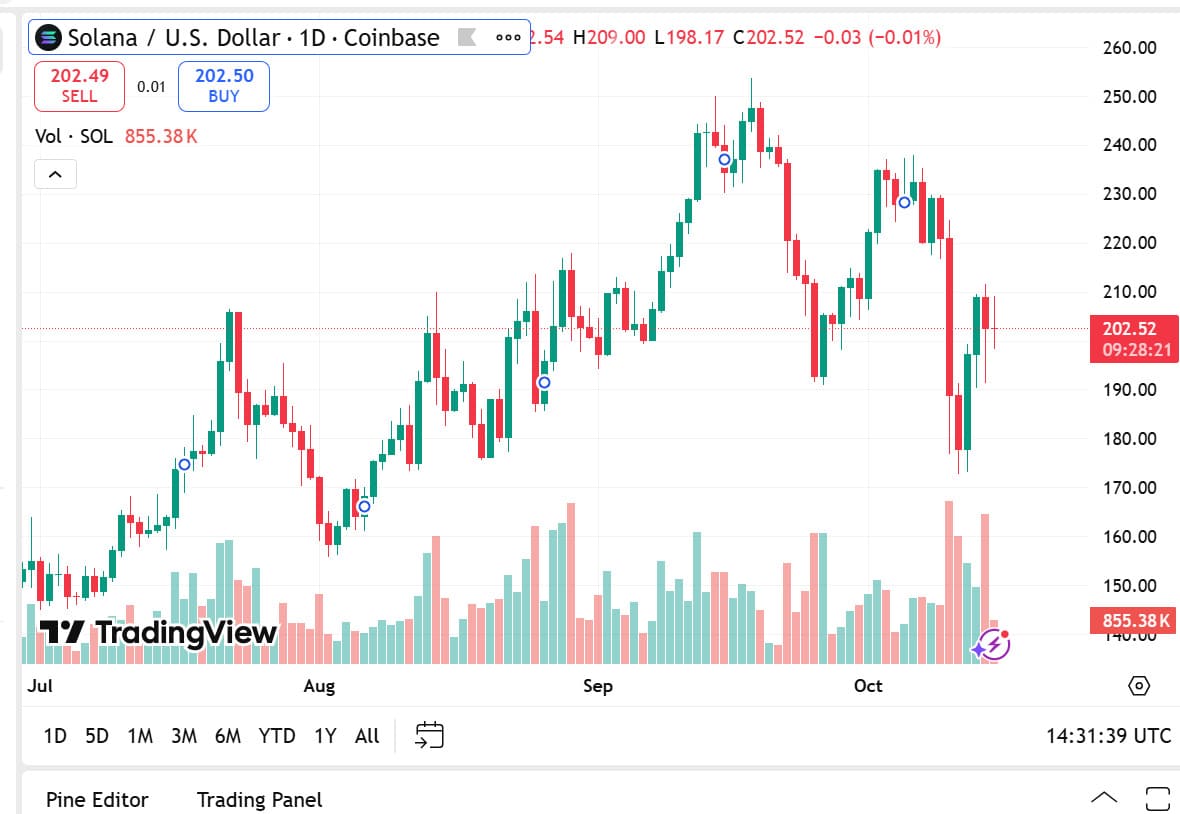 Solana also maintains the pace with a 3.66% appreciation in price to $202.49. It has a market cap of $111.78 billion and $10.78 billion in trading volume. Solana’s consistency is the result of its growing domination of decentralized applications, low-gas-cost cryptocurrency ecosystems, and as alternative Ethereum for top crypto investors.