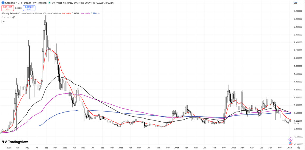 Cardano (ADA) remains one of the most recognized Layer-1 networks in the market, yet its current price near $0.40 highlights how investor focus has shifted compared to earlier cycles. Once a leading narrative in 2021, ADA now trades significantly below its all-time high of $3.10, reflecting broader changes in how the market values infrastructure-focused projects.