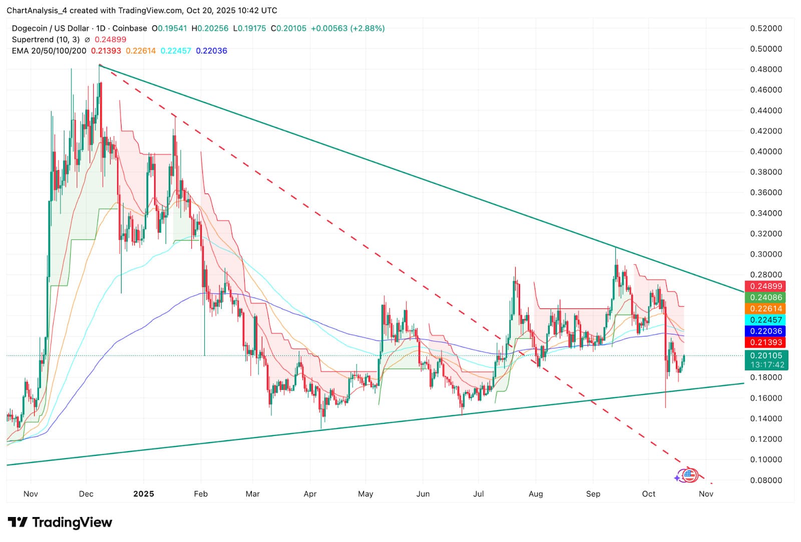 Dogecoin currently trades around $0.20, holding steady despite recent market swings. Traders are watching the $0.22 level, as a break above could open the path toward $0.30. The excitement around the ETF filing has already lifted sentiment, and experts believe that approval could push Dogecoin to new yearly highs.