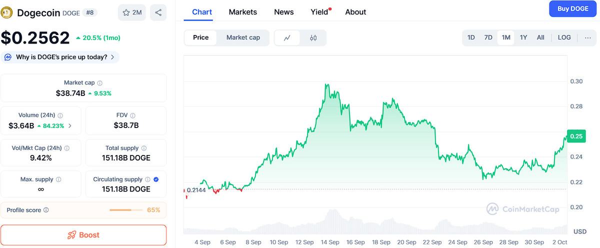Meanwhile, Dogecoin (DOGE) remains a fan favorite and is currently trading at $0.2562. Analysts believe that if momentum continues, DOGE could make a run toward the $1 milestone, a level that has long symbolized the coin’s meme-fueled ambition.