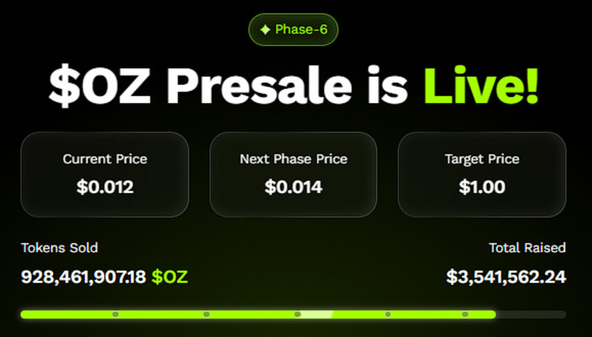 Crypto investors in 2025 are buzzing about Ozak AI (OZ), a presale project that’s quickly turning into one of the year’s hottest opportunities. Currently priced at just $0.012 per token in its 6th OZ presale stage, Ozak AI has already raised more than $3.5 million and sold over 925 million tokens. Analysts now predict a surge to $1 by 2026, representing a staggering 100x return for early backers.