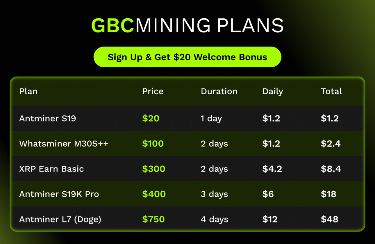 Don’t panic-sell during the crash. Start earning passive income today with GBC Miningājoin thousands of miners profiting daily regardless of market conditions. Claim Your $20 Welcome Bonus Now and begin your cloud mining journey in minutes.