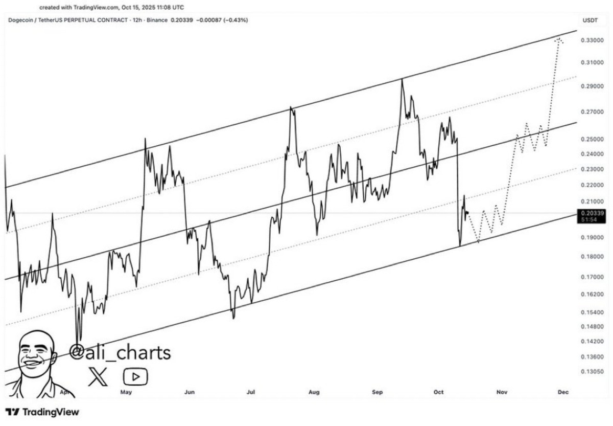 The Dogecoin price is currently trading just below the $0.19 resistance level. The coin recently tested support at $0.114 before rebounding to its current value of $0.187. Analysts suggest a move above $0.19 could push the Dogecoin price toward $0.30–$0.33.