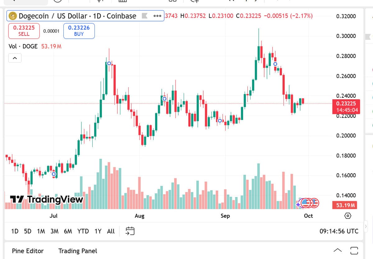 The Dogecoin Price stands at $0.2322, with a 1.52% rise in a single day. Supported by a market cap of $35.13 billion and a trading volume of $1.87 billion, which is an increase of 46.96%, DOGE continues to enjoy steady liquidity and robust retail backing.