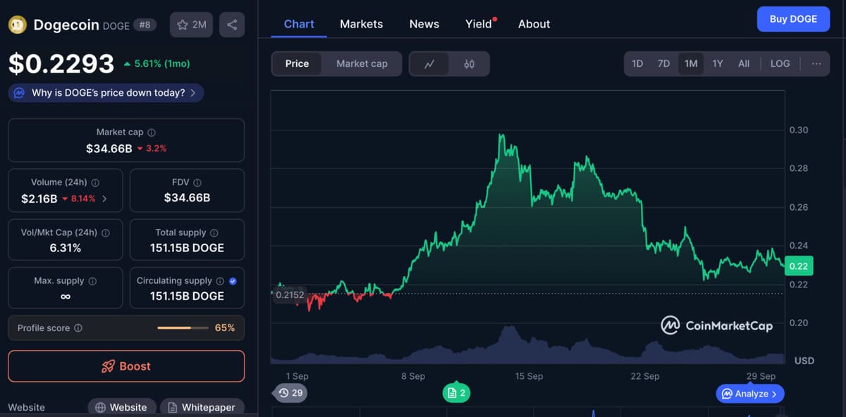 Dogecoin has once again hit a wall near the $0.30 level, reminding traders of its volatile nature. Each attempt to move higher has been met with resistance, leaving the token caught in a familiar trading range. While Dogecoin still has a loyal community, price momentum is slowing as new projects gain attention.