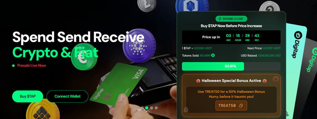 Its ongoing presale has already raised $1.4 million, with each $TAP token currently priced at $0.0268, and the next round set at $0.0297. These numbers mark the presale as one of the most accessible opportunities for early entry. It is trending as the best altcoin to buy now because Digitap merges crypto wallets, card payments, and borderless transfers in one app.