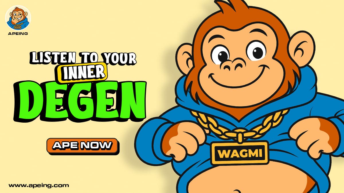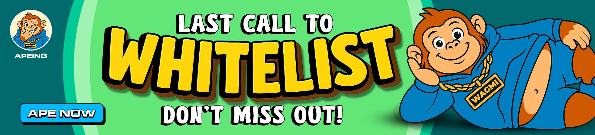 Apeing is presenting its launch around a Whitelist model that, as described by the project, provides early access to an initial pricing phase (listed as 0.0001). The project also references a planned listing price (0.001). Such figures are project-stated targets and do not indicate future market performance.