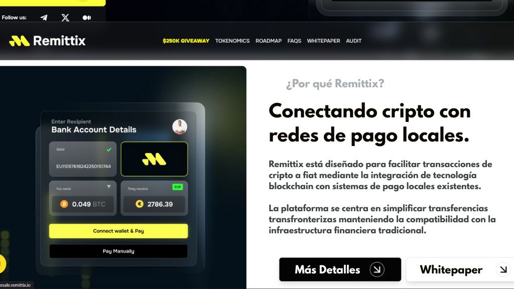 Remittix está diseñado para abordar un caso de uso práctico: permitir que individuos y empresas envíen criptomonedas directamente a cuentas bancarias del mundo real con rapidez y transparencia.