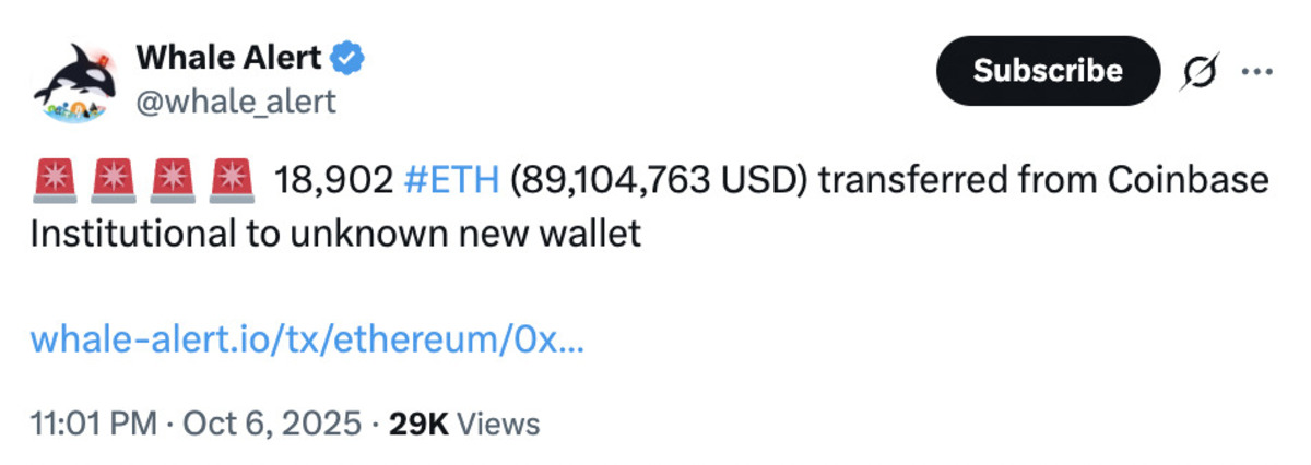 Según Whale Alert, las grandes carteras han empezado a redistribuir sus tenencias de ETH hacia exposiciones más diversificadas, un patrón que no se veía desde antes de la rotación de 2023.
