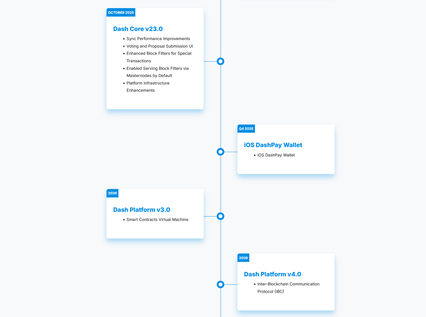 Según la hoja de ruta oficial de Dash, se espera que ambas actualizaciones importantes se implementen en la blockchain de Dash en 2026.