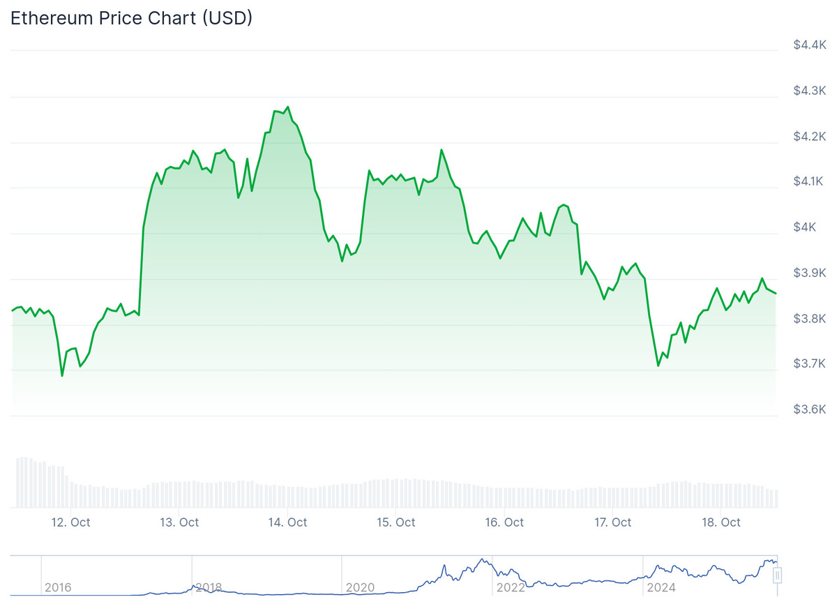 Price weakness and selling pressure, which have caused ETH to drop below $3,800, have led some analysts to suspect that a local bottom is forming. Near-term volatility and caution persist due to rising ETF outflows and uncertainty, likely denting sentiment. Ethereum is currently mixed, trading near $3,700. $3,700.