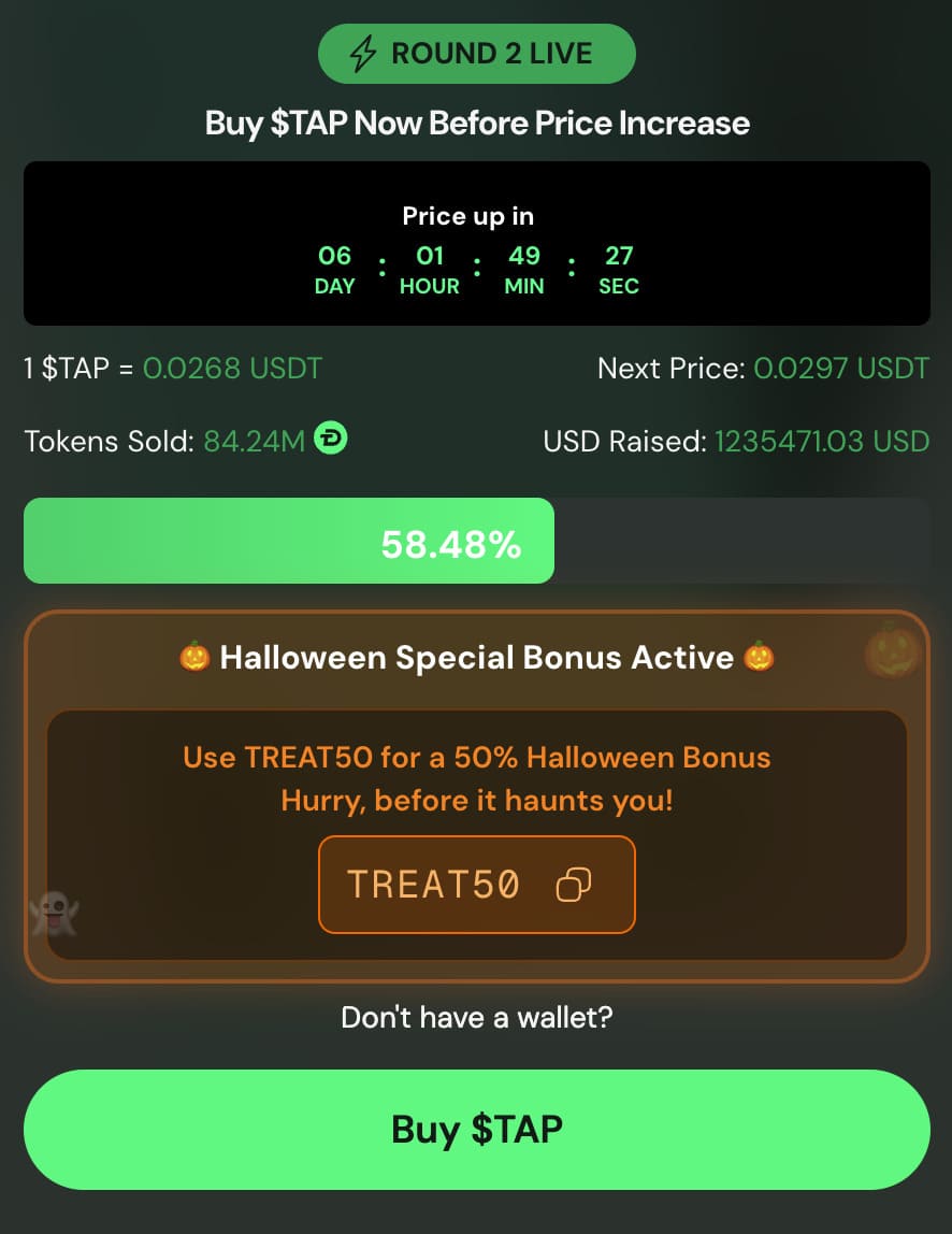 The presale is halfway through, and the next stage price jump is just days away. Investors will have to act fast if they want to secure $TAP at its current price and become early adopters of the omni-banking platform that could change global finance forever.