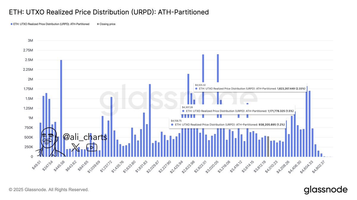 According to Ali Martinez, ETH needs to stay above $4,000 to gather momentum, and the three resistance levels to watch for Ethereum, $ETH: $4,158, $4,307, and $4,505.