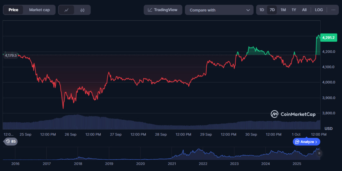 Ethereum had an extremely successful period in the past few months. ETH was selling for only $1,472 this April, followed by a price explosion to over $4,830 in August 2025. However, while it has lost some momentum, the latest Ethereum price prediction still indicates gains in Q4 2025.Ā