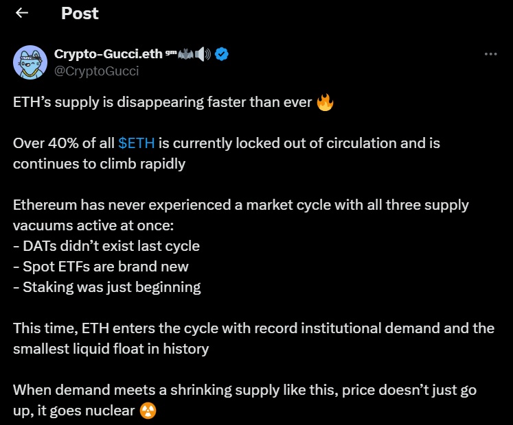 Ethereum (ETH) remains a leader in the blockchain space, with 40% of its total supply locked in various forms, including staked ETH, U.S.-based ETFs, and digital asset treasuries. This supply constraint, combined with growing institutional demand, positions Ethereum for significant price growth in October 2025.