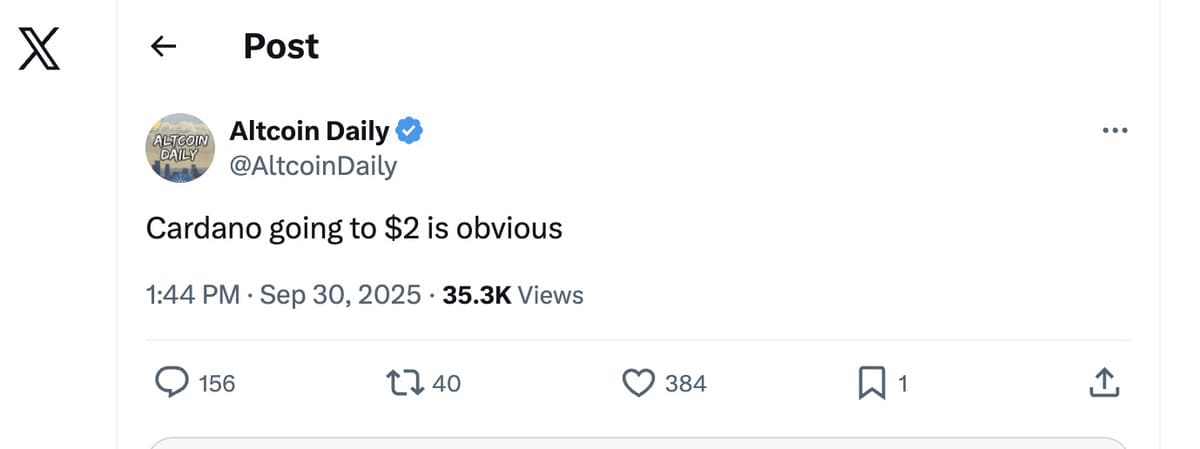 Community discussions point to $2 as a realistic target, which would mean more than doubling from current prices near $0.79. Influencer Austin Arnold of Altcoin Daily called this move ā€œobvious,ā€ while other forecasts run much higher, with AI-driven projections suggesting $7 before year-end.