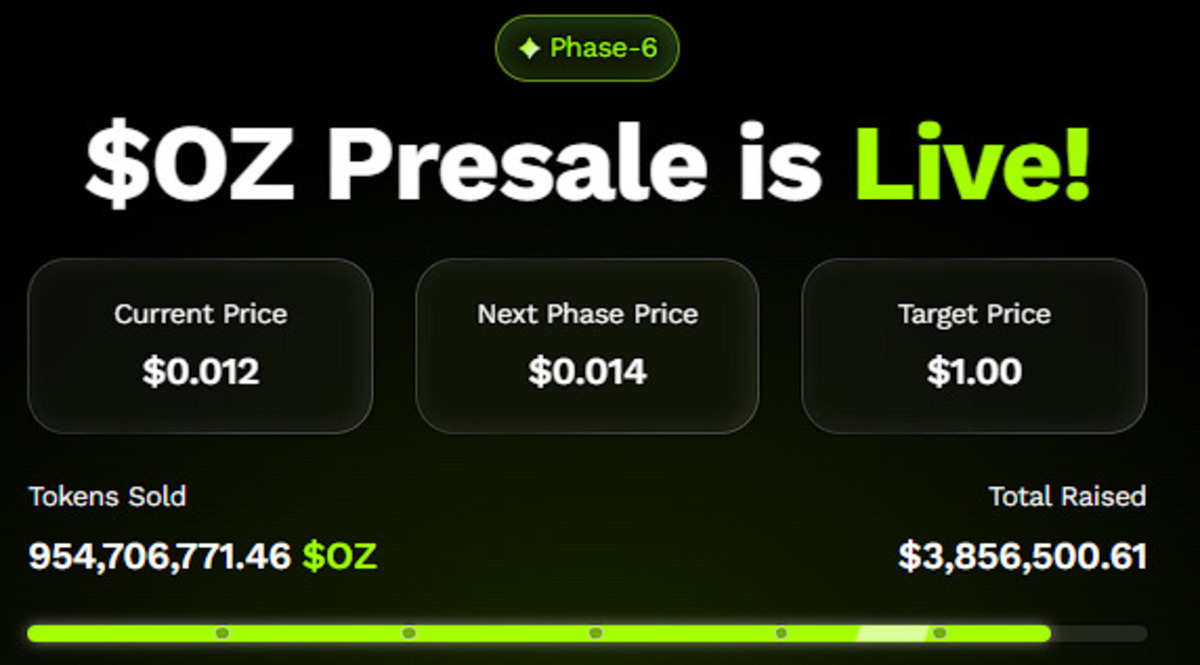 Ozak AI is currently in its 6th presale stage, priced at just $0.0012. More than 950 million tokens have already been sold, with over $3.8 million raised—a clear sign that large capital is flowing in early. This isn’t just a hype-driven token launch. Ozak AI is fusing artificial intelligence with blockchain technology, aiming to build a predictive intelligence layer for traders, DeFi protocols, and applications.