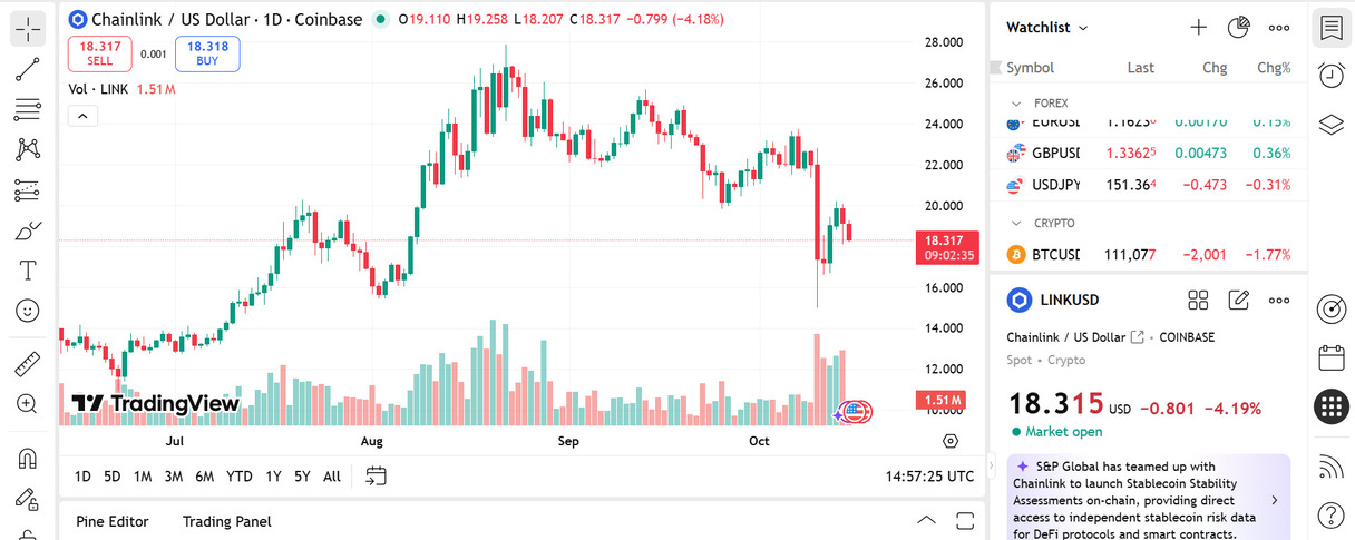 LINK has gained attention on institutional fronts. It recently joined the SEC Crypto Task Force, which has bolstered its legitimacy. LINK is currently trading at $18.31 and if LINK continues gaining institutional support, it may push higher beyond $20.