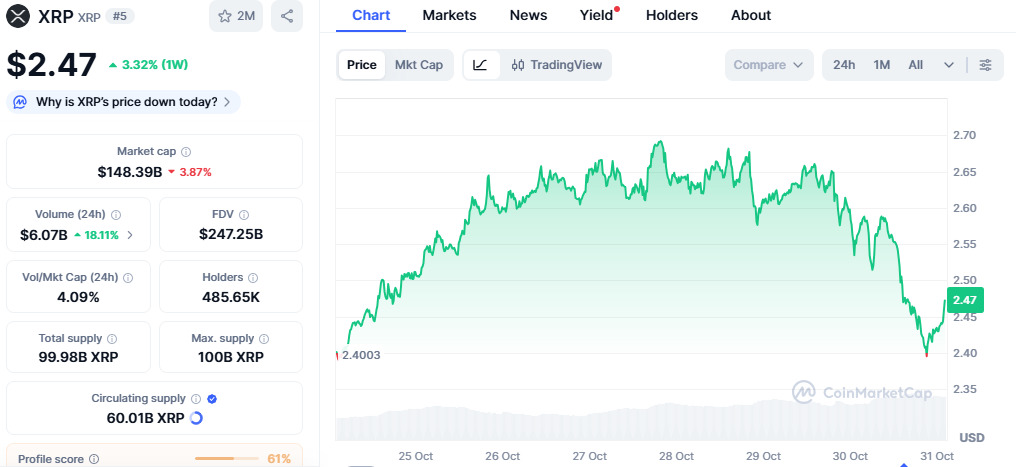 Despite recent downturns, the XRP price shows remarkable strength. Bulls maintain a 3% gain in the weekly timeframe, as the altcoin trades above $2.4. Can it soar even higher and revisit higher price levels?