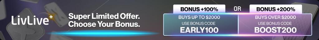 - Up to $2,000? Use code EARLY100 for a +100% bonus