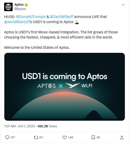 Source: https://twitter.com/Aptos/status/1973268499167584518